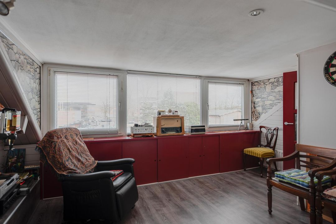 Tweede verdieping (via spiltrap bereikbaar): ruime zolderkamer met grote dakkapel en veel bergruimte, C.V.-opstelling (Remeha bj. 2017).