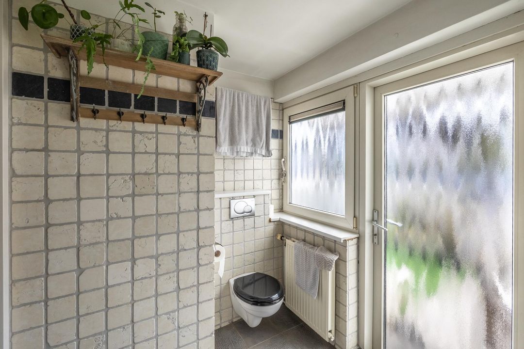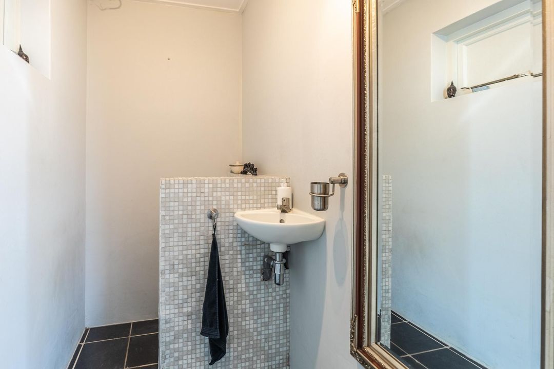 Entree/vestibule, mk, royale brede woon-eetkamer met een fraaie parketvloer en een schuifpui naar de zonnige achtertuin op het westen met schuur/berging, grote luxe eetkeuken met diverse apparatuur, kelder, tussenhal, luxe toilet met fontein, gang met vaste kastenwand en een stook ruimte welke is v.v. van een cv-combiketel (Nefit bwjr. 2015), zeer riante multifunctionele ruimte met een grote vaste kast, de ruimte is momenteel in gebruik als geluidsstudio/bioscoop maar deze ruimte kan natuurlijk gebruikt worden als slaapkamer of kantoor en is groot genoeg om er een 2e badkamer in te maken.