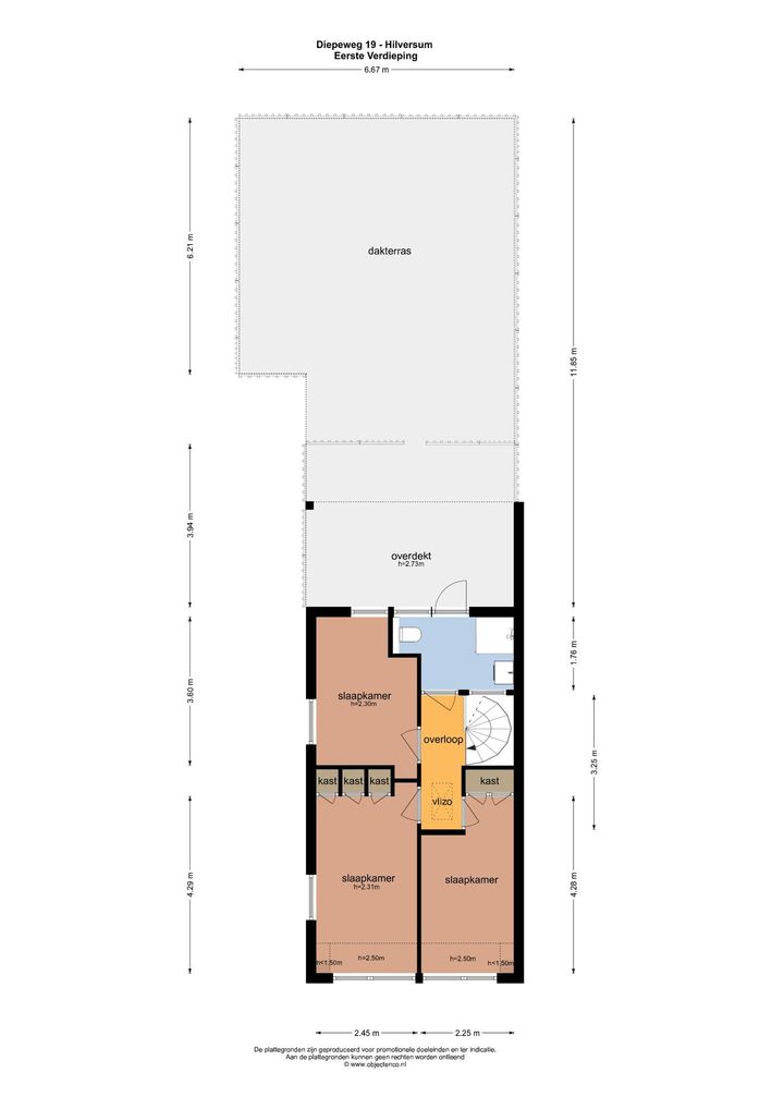 Overloop, 1e grote slaapkamer, 2e grote slaapkamer met vaste kast, 3e grote slaapkamer, badkamer met douche, wastafel , 2e toilet en een deur naar een groot dakterras op het westen met uitzicht op de oude katholieke parochie van de Vitus kerk. Vliering bereikbaar via een vlizo trap.