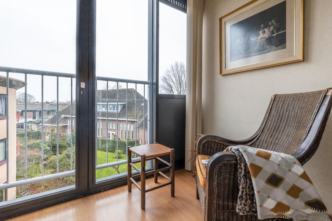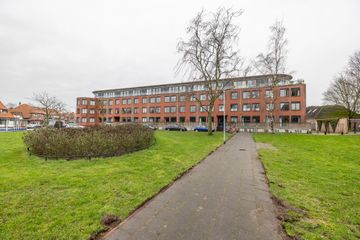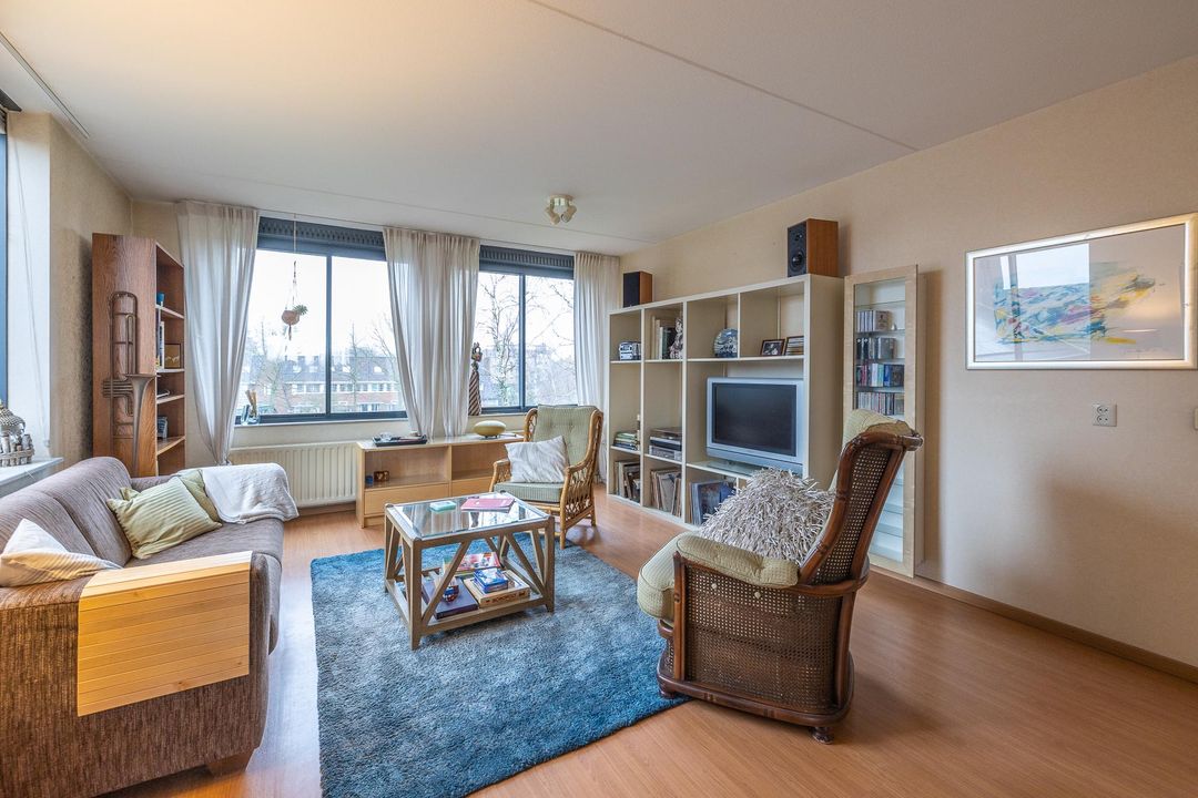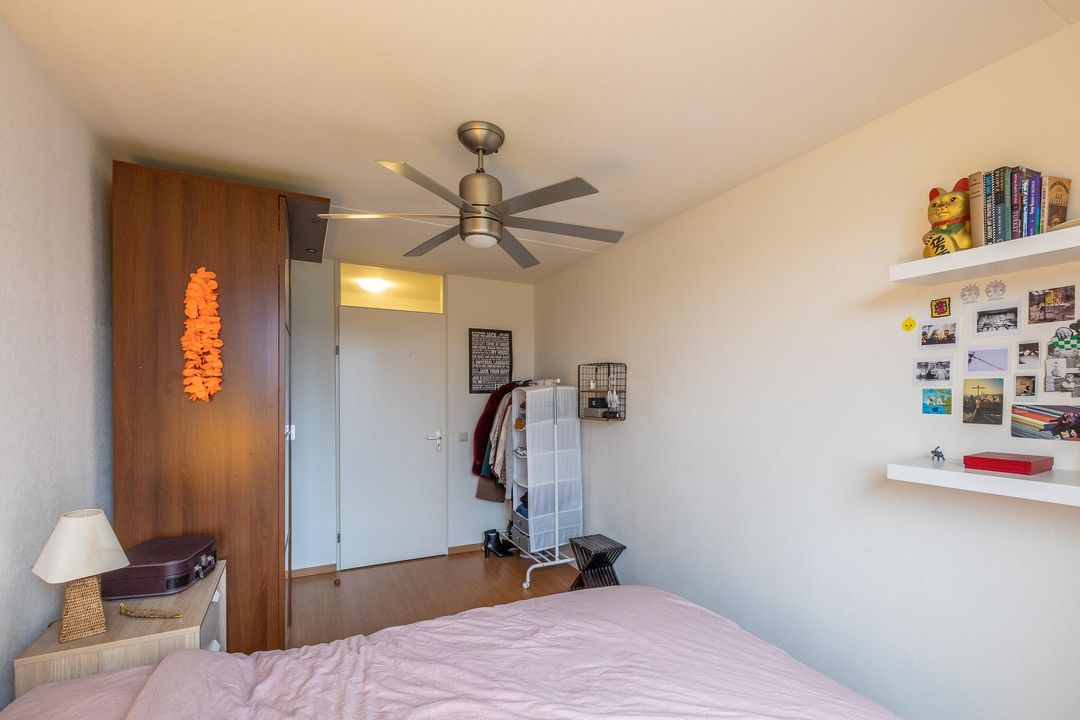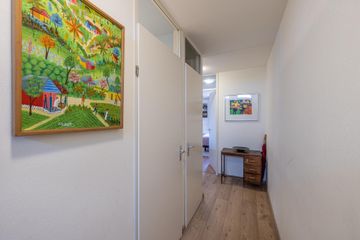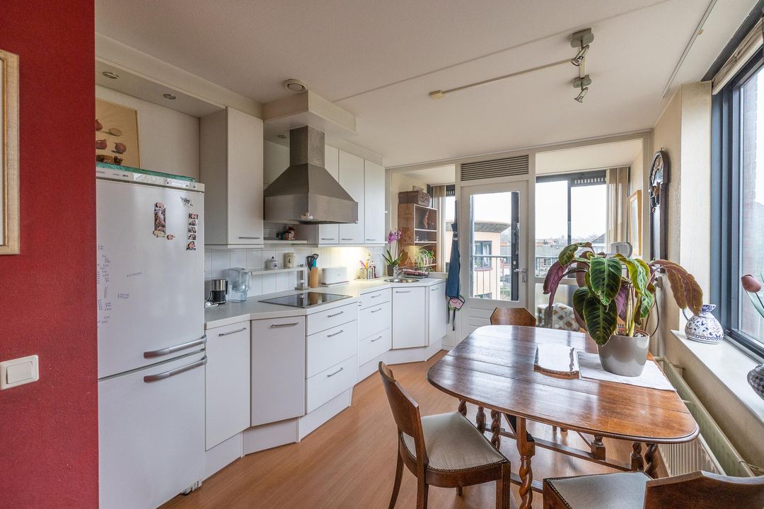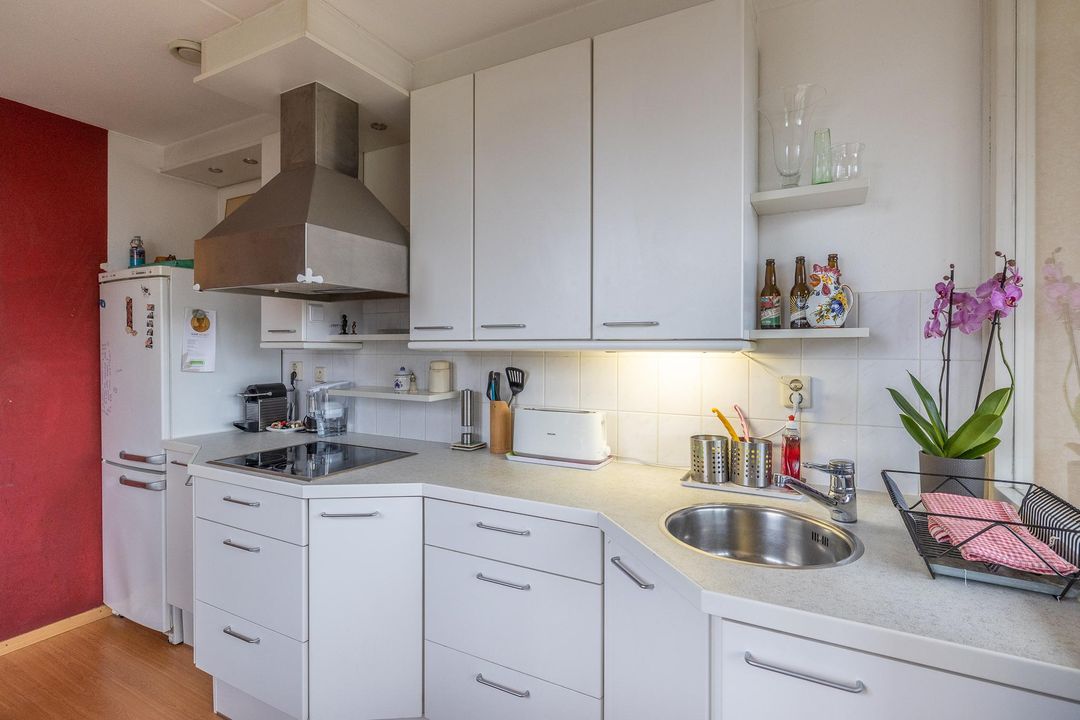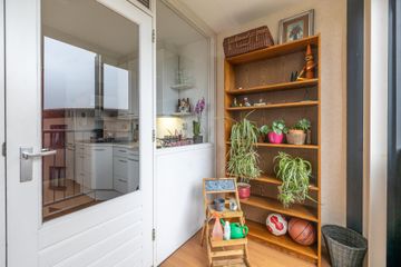 Indeling: Entree, gang, 1e slaapkamer, ruime badkamer met vaste wastafel, inloop douche en wm/droger aansluiting, separaat toilet, meterkast, zeer royale 2e slaapkamer, ruime lichte woon/eetkamer met fraai wijds uitzicht en open keuken v.v. apparatuur, met aan de keukenzijde een schuifpui welke toegang geeft tot het inpandige balkon op het zuiden.