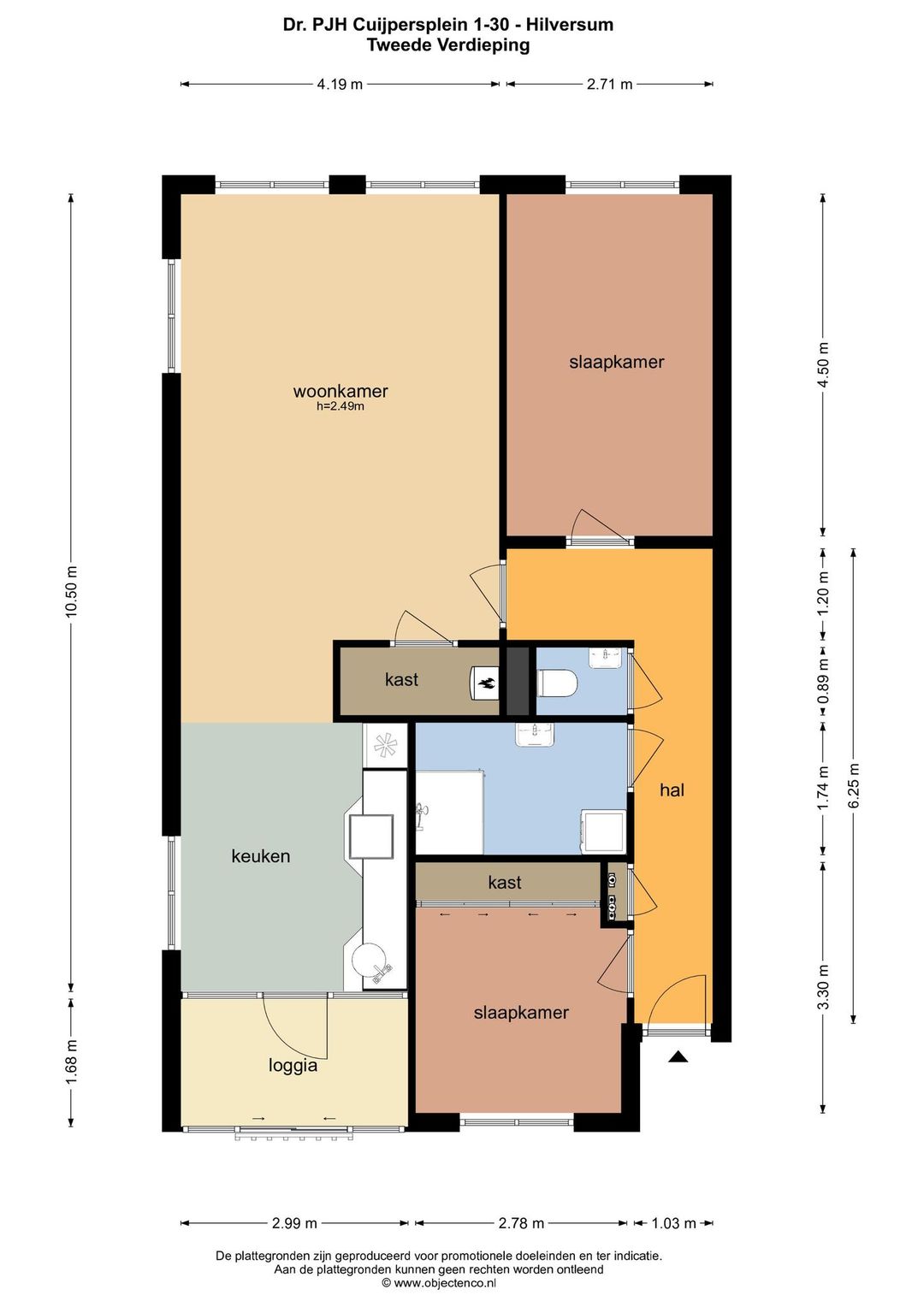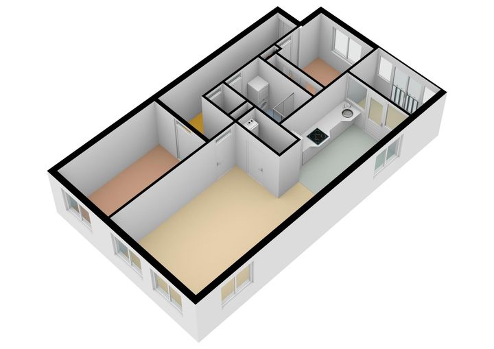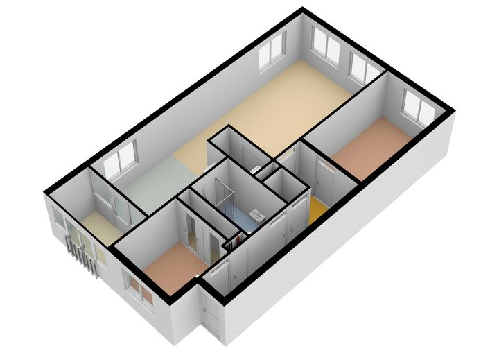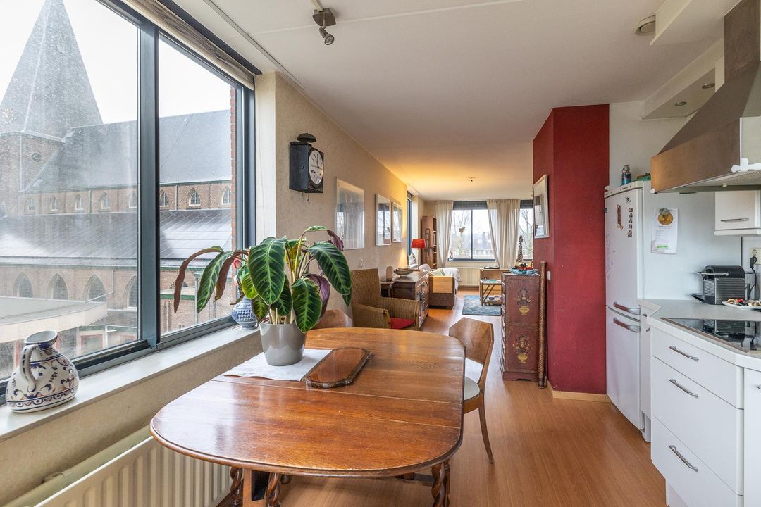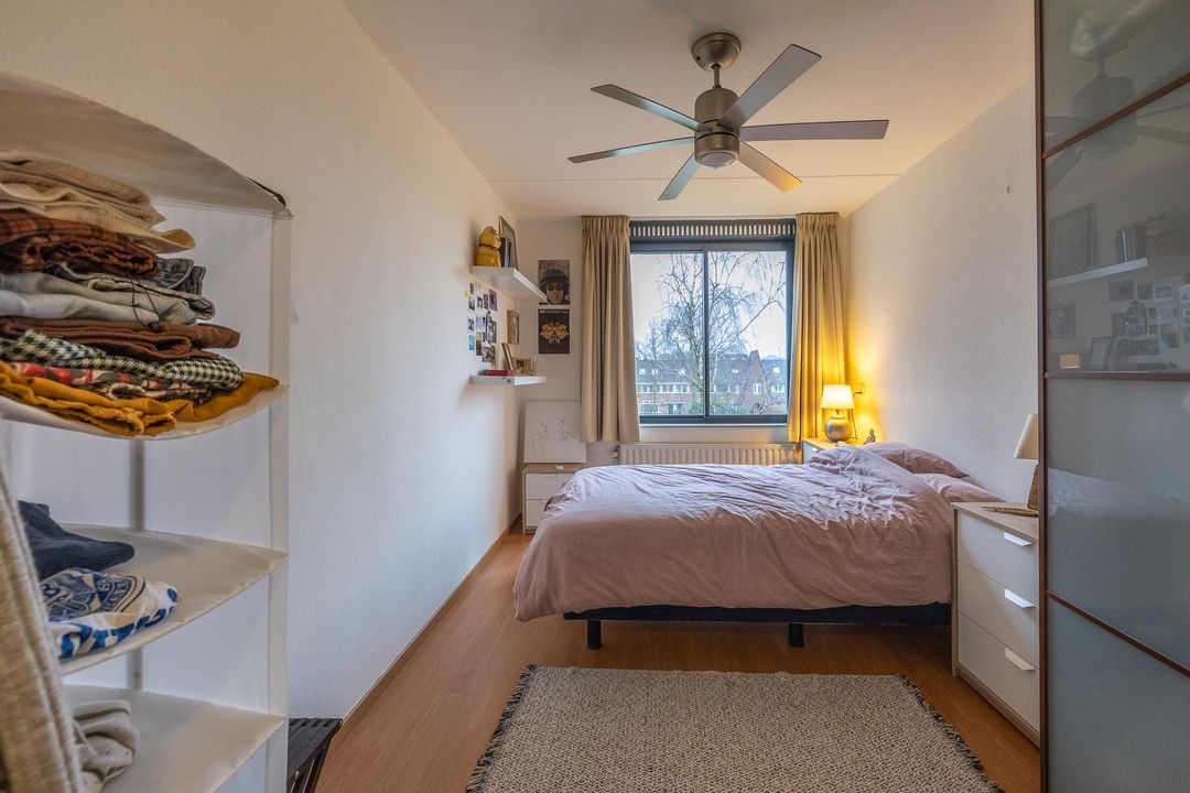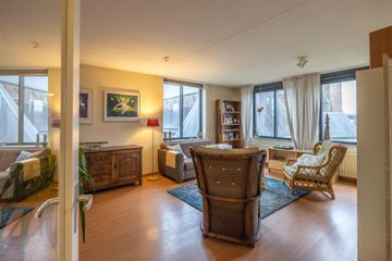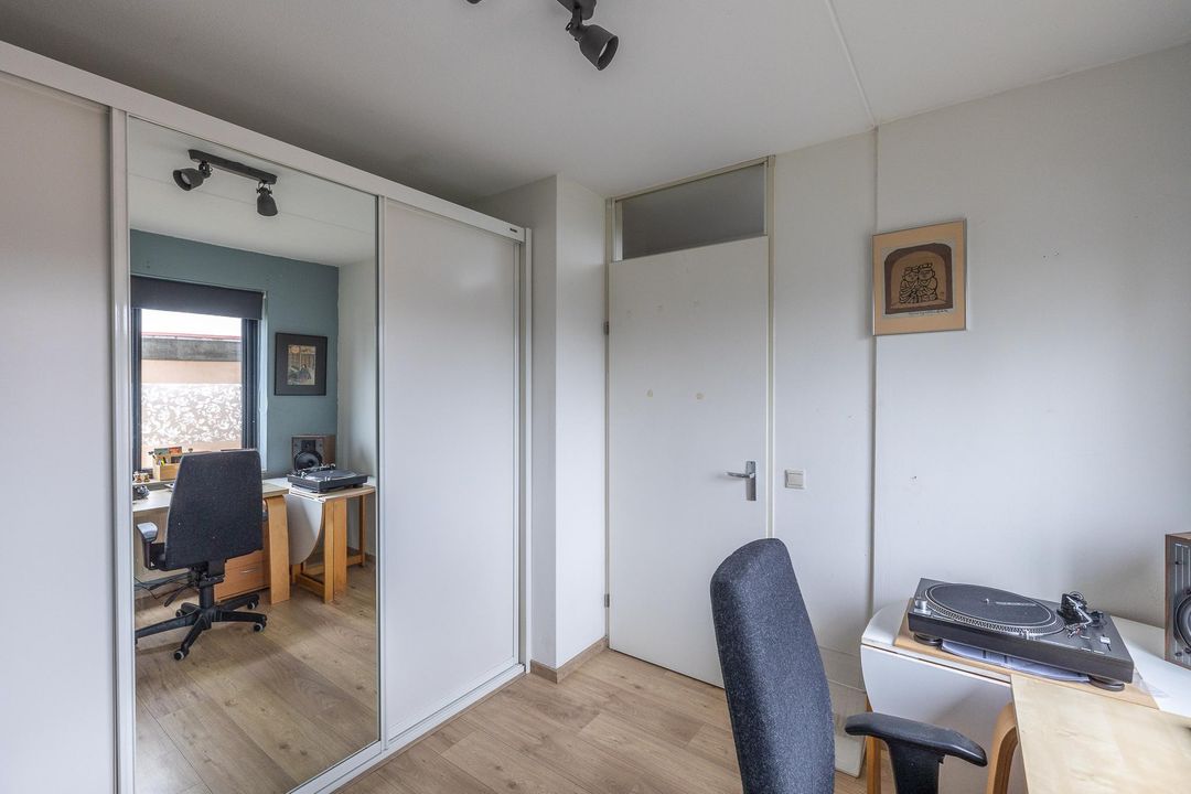 Indeling: Entree, gang, 1e slaapkamer, ruime badkamer met vaste wastafel, inloop douche en wm/droger aansluiting, separaat toilet, meterkast, zeer royale 2e slaapkamer, ruime lichte woon/eetkamer met fraai wijds uitzicht en open keuken v.v. apparatuur, met aan de keukenzijde een schuifpui welke toegang geeft tot het inpandige balkon op het zuiden.