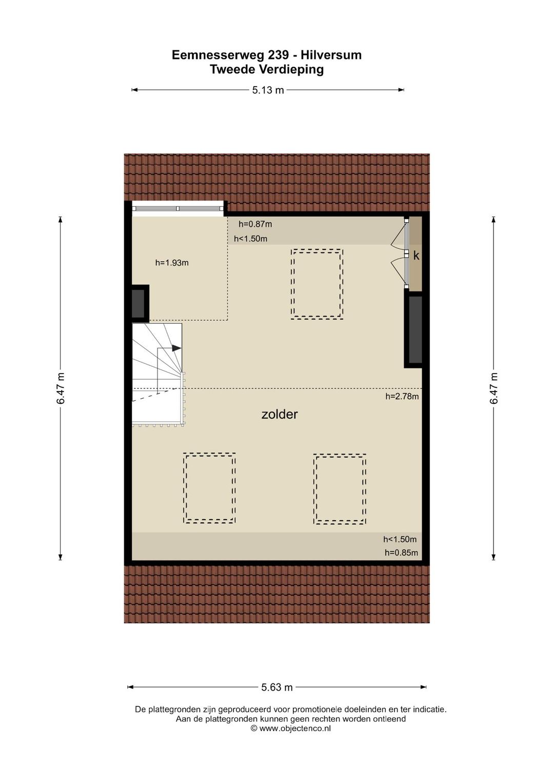 – gehele verdieping is in te delen in 4e en 5e slaapkamer en 2e badkamer.