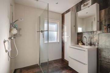 – moderne badkamer met inloopdouche, wastafelmeubel en 2e toilet