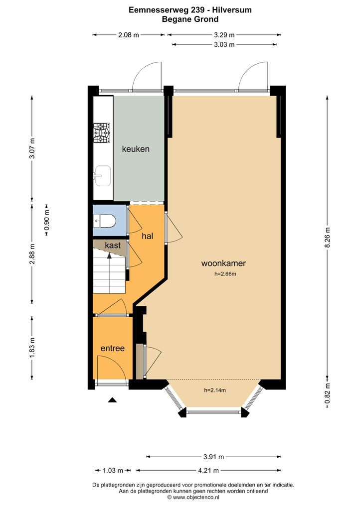 – uitgebouwde lichte woon- /eetkamer met erker aan de voorzijde