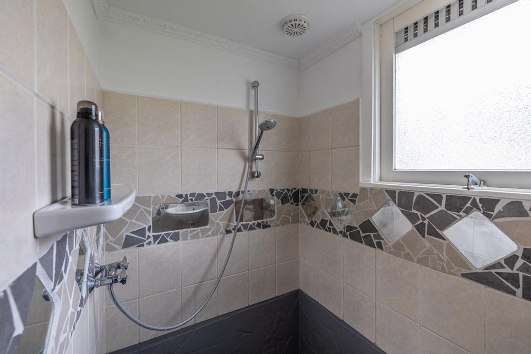 Eerste verdieping: overloop, badkamer voorzien van inloopdouche en wastafel, 1e slaapkamer (thans in gebruik als waskamer), 2e grote slaapkamer aan de achterzijde met vaste kast en 3e grote slaapkamer aan de voorzijde.