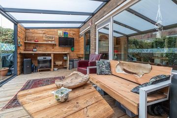 Begane grond: entree/gang, trapkast voorzien van moderne meterkast, toilet, woon-/ eetkamer, open keuken, royale serre met palletkachel en schuifpui naar de tuin met een schuur voorzien van elektra.
