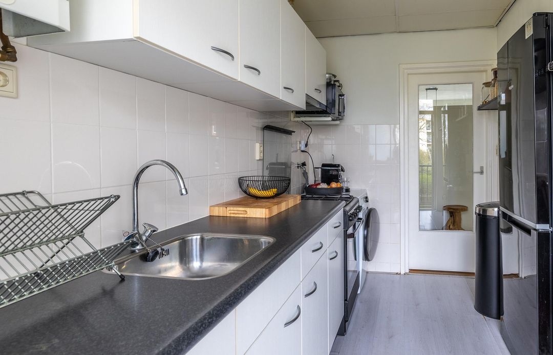 Op de eerste woonlaag gelegen ruim en licht, keurig onderhouden 3-kamer HOEK-appartement met balkon aan zowel de voor- als achterzijde enaan de voorzijde ook nog een zonnige voortuin. Het appartement is gunstig gelegen nabij winkels, uitvalswegen (A1 en A27) en natuur. Het betreft het grote type (voorheen 4-kamer-) appartement!