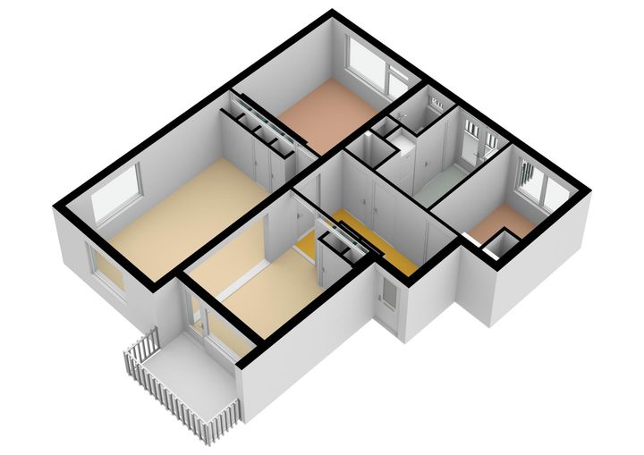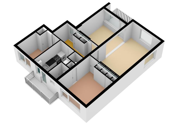 entree, ruime hal met toilet en vaste kast. Dichte, eenvoudige maar nette keuken met wasmachineaansluiting en deur naar balkon aan de achterzijde. Vanuit de keuken tevens toegang tot de badkamer met douche en wastafel. Lichte en ruime woon- / eetkamer aan de voorzijde met deur naar balkon. Vanuit de woonkamer doorloop naar de hoofdslaapkamer aan de achterzijde met vaste kast. De 2e slaapkamer is tevens aan de achterzijde gesitueerd, met vaste kast en bereikbaar vanuit de hal. Het gehele appartement is voorzien van een lichte laminaatvloer.