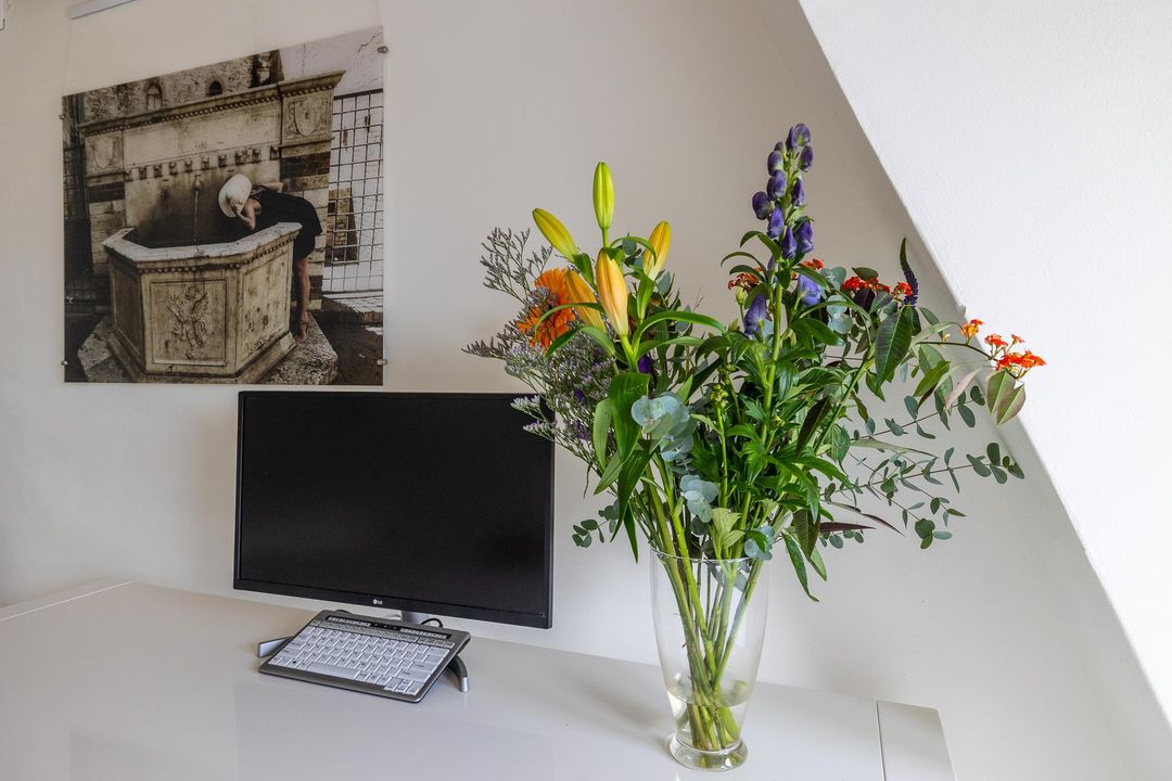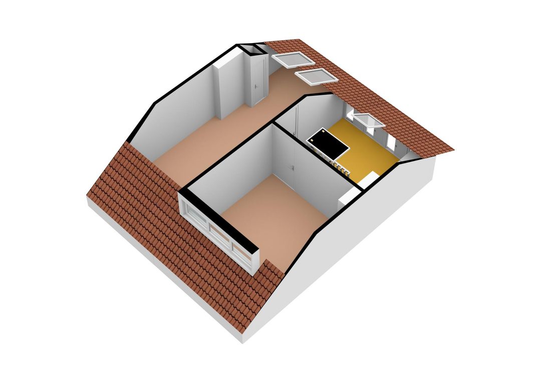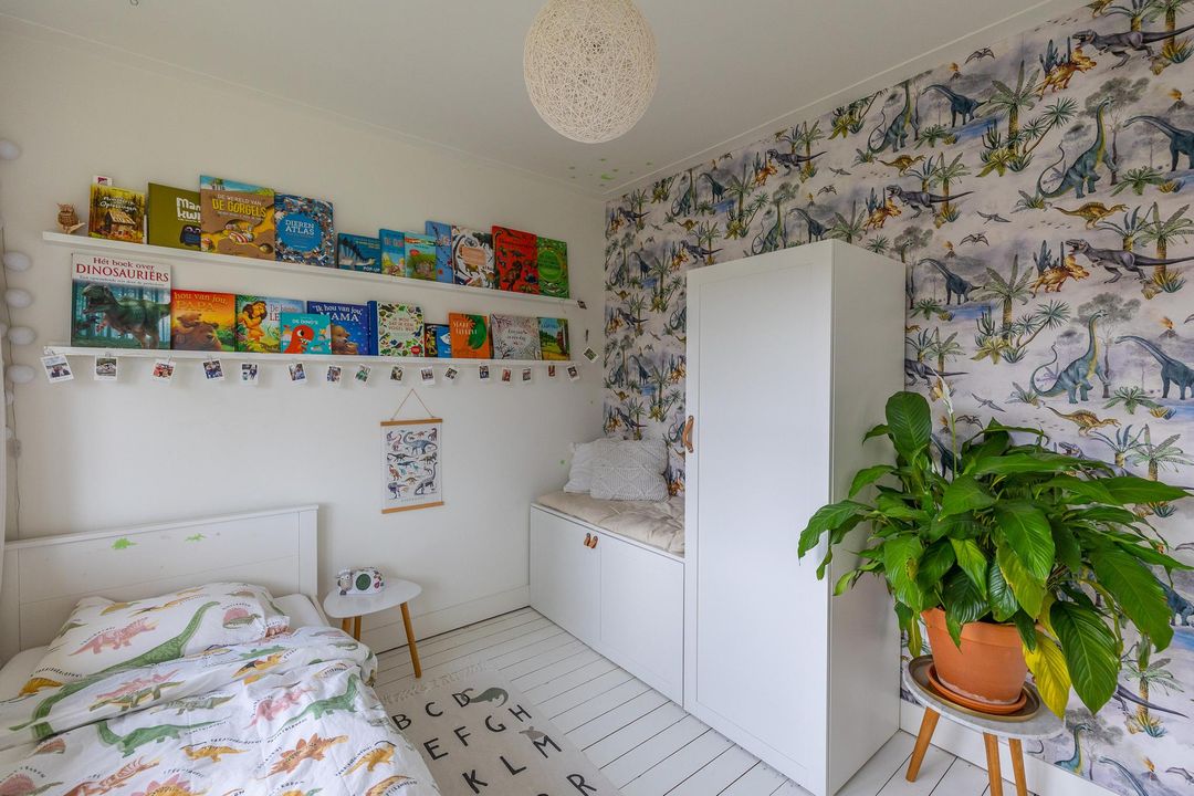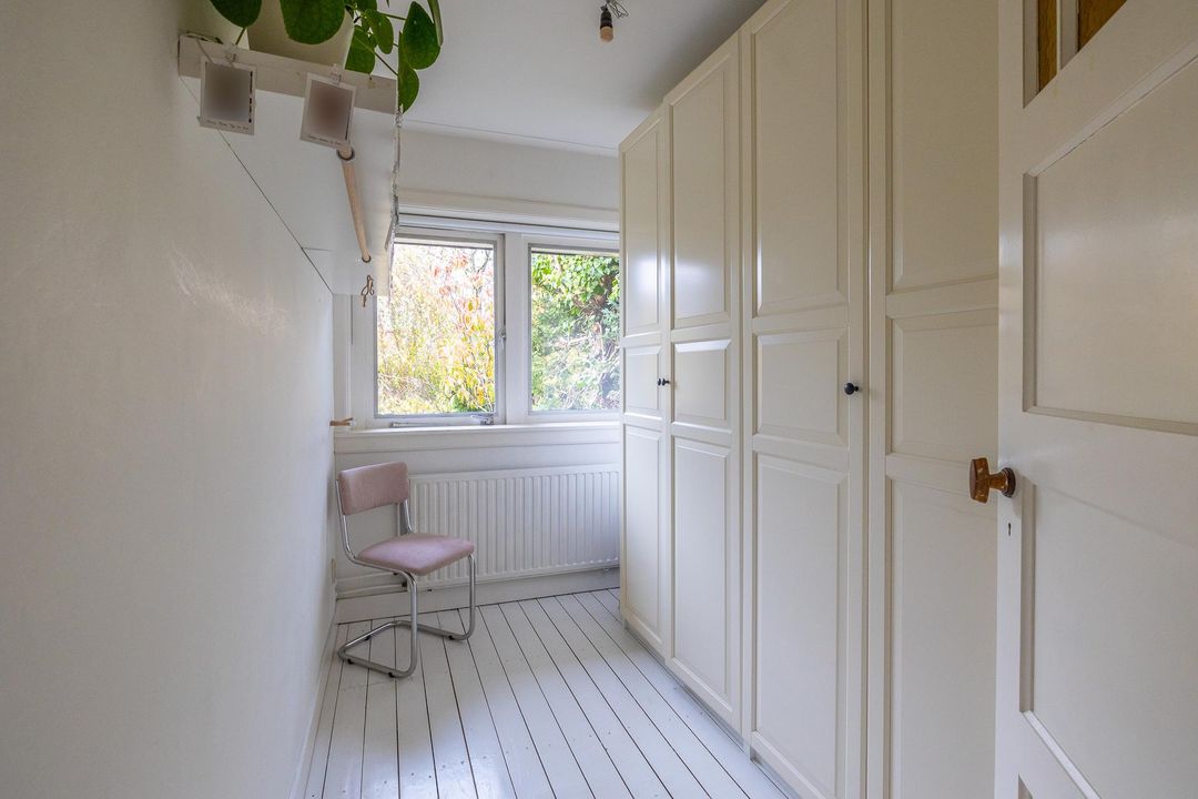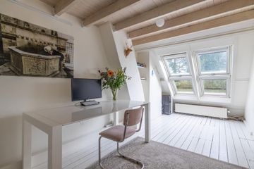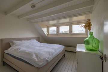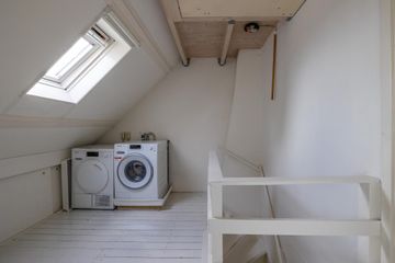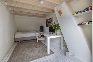 Tweede verdieping: vaste trap naar zolder, voorzolder met aansluiting voor de wasmachine, vlizotrap naar de vliering en veel bergruimte in de knieschotten, grote 4e slaapkamer met 4 Veluxramen en een kast met de C.V.-opstelling, 5e royale slaapkamer met dakkapel aan de voorzijde. De gehele kapverdieping is geïsoleerd.