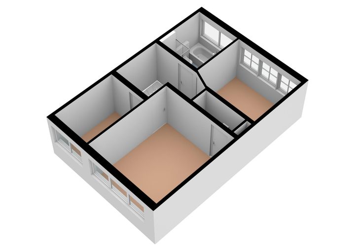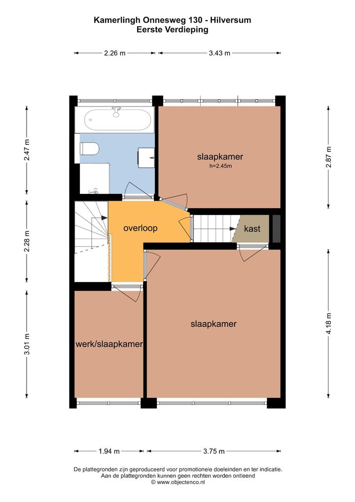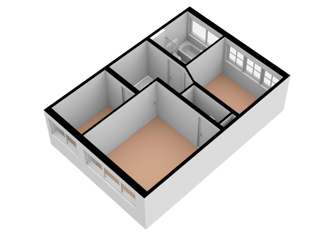 Eerste verdieping: overloop, 3 slaapkamers, badkamer voorzien van douche, ligbad, wastafelmeubel, toilet en mechanische ventilatie.