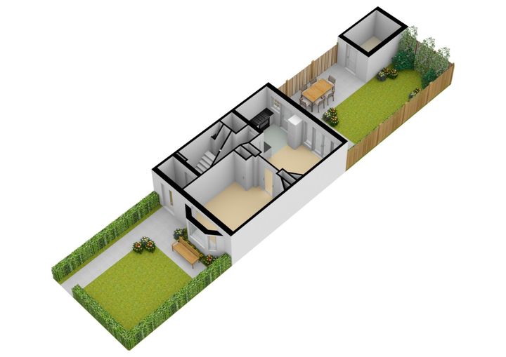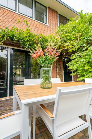 Tuin: er is een ruime voortuin en een vrije en zonnige achtertuin met schuur en een achterom via de schuur. De tuin is gesitueerd op het zuidoosten en biedt nagenoeg de gehele dag de zon.