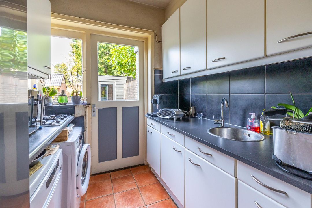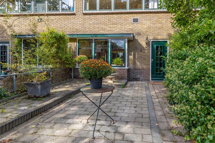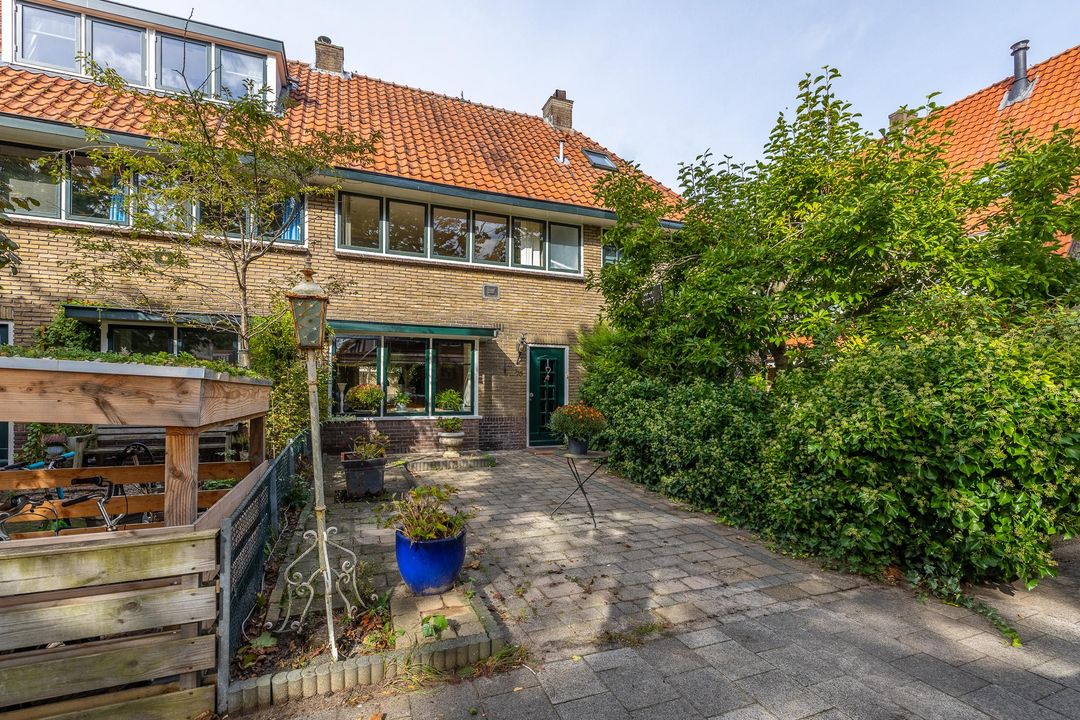 In leuk, gezellig straatje met veel bomen, nabij uitvalswegen, natuurgebied, station en het centrum van Hilversum gelegen middenwoning met voor en zeer diepe achter tuin.