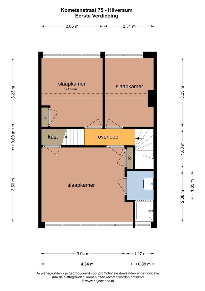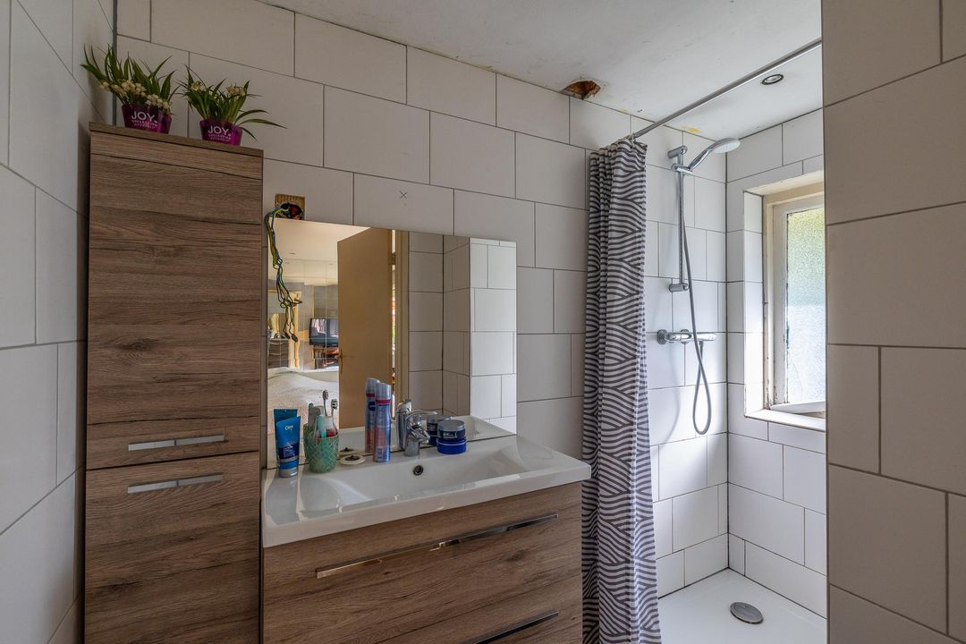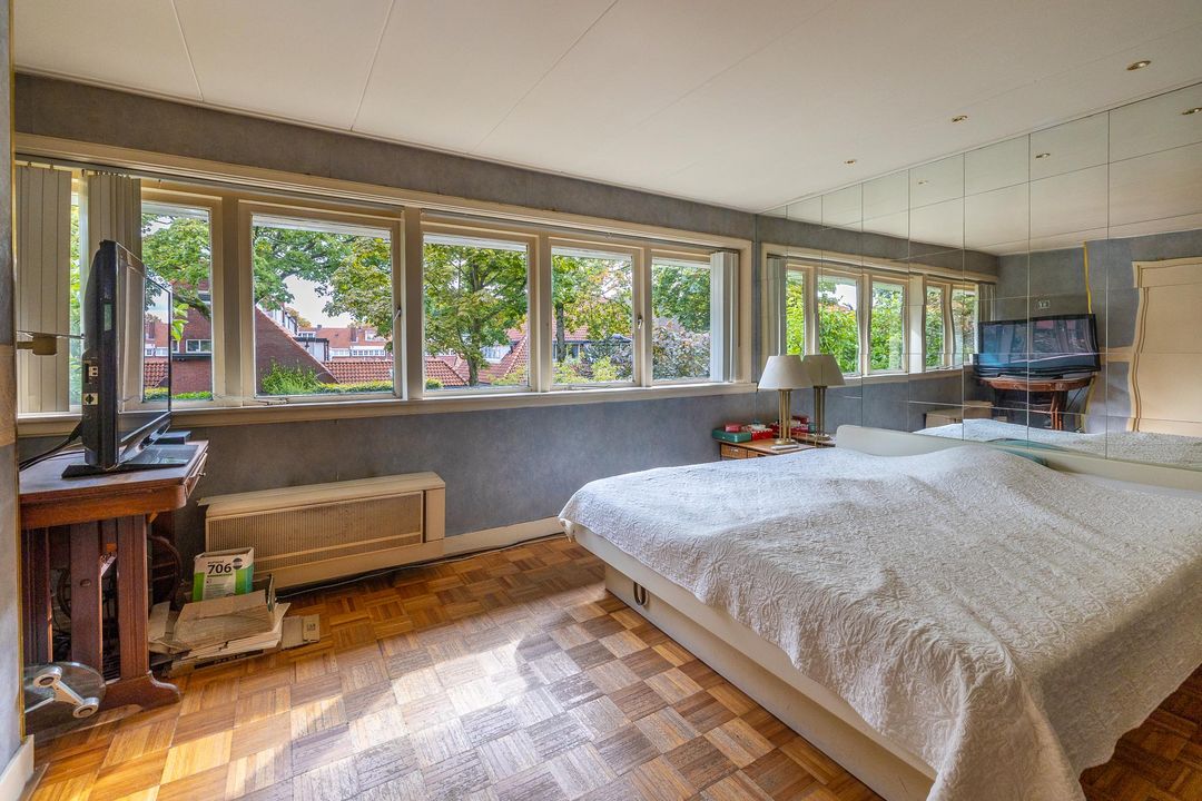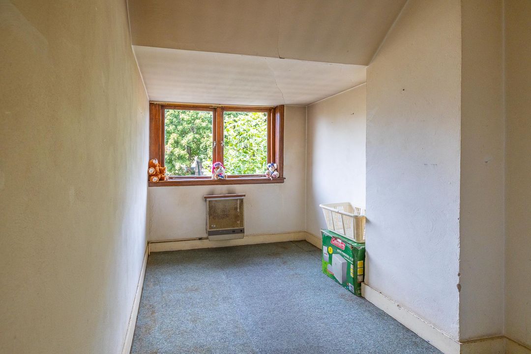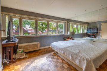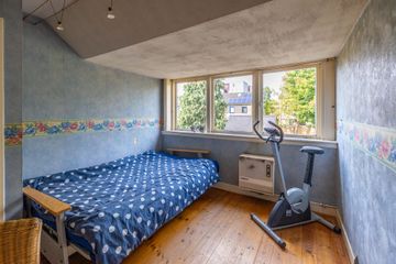 1e verdieping: zeer grote slaapkamer aan de voorzijde met badkamer v.v. wastafel en douche, r slaapkamers aan de achterzijde.
