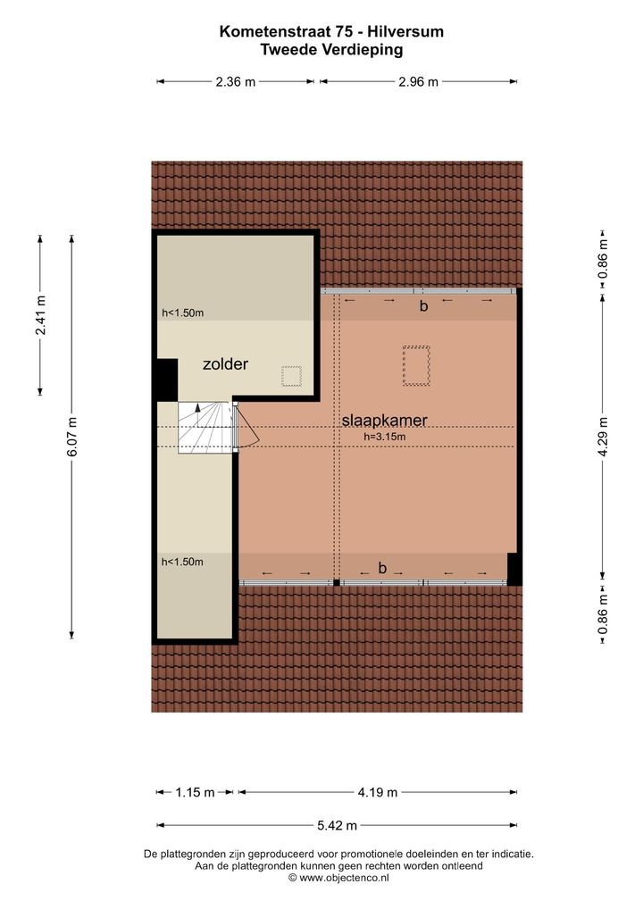 Via vaste trap naar zolderverdieping met voorzolder v.v. bergruimte en 4e zolderkamer.