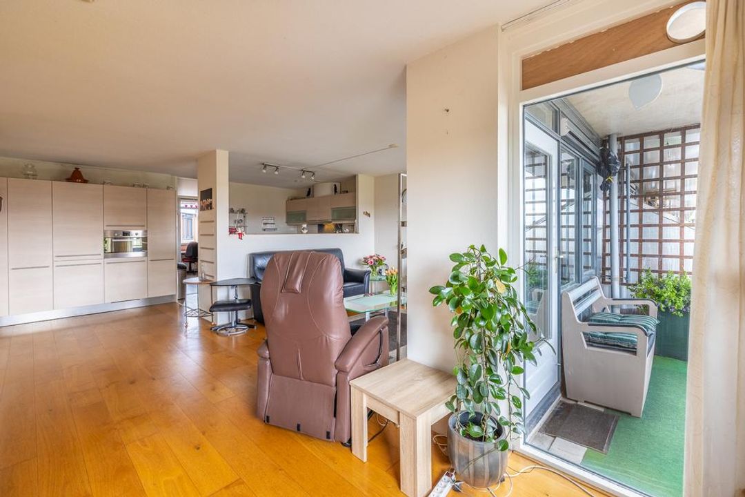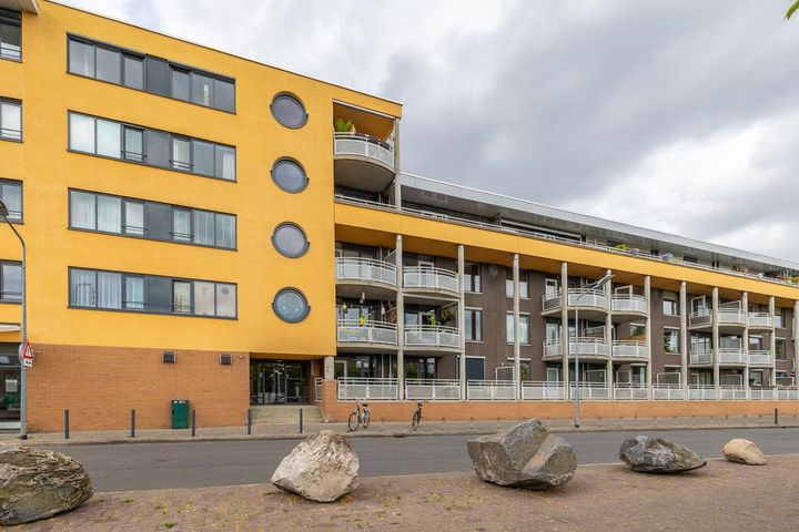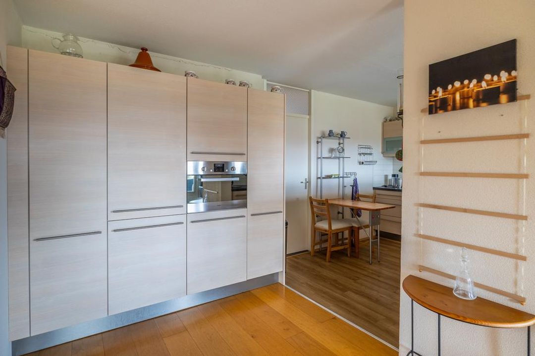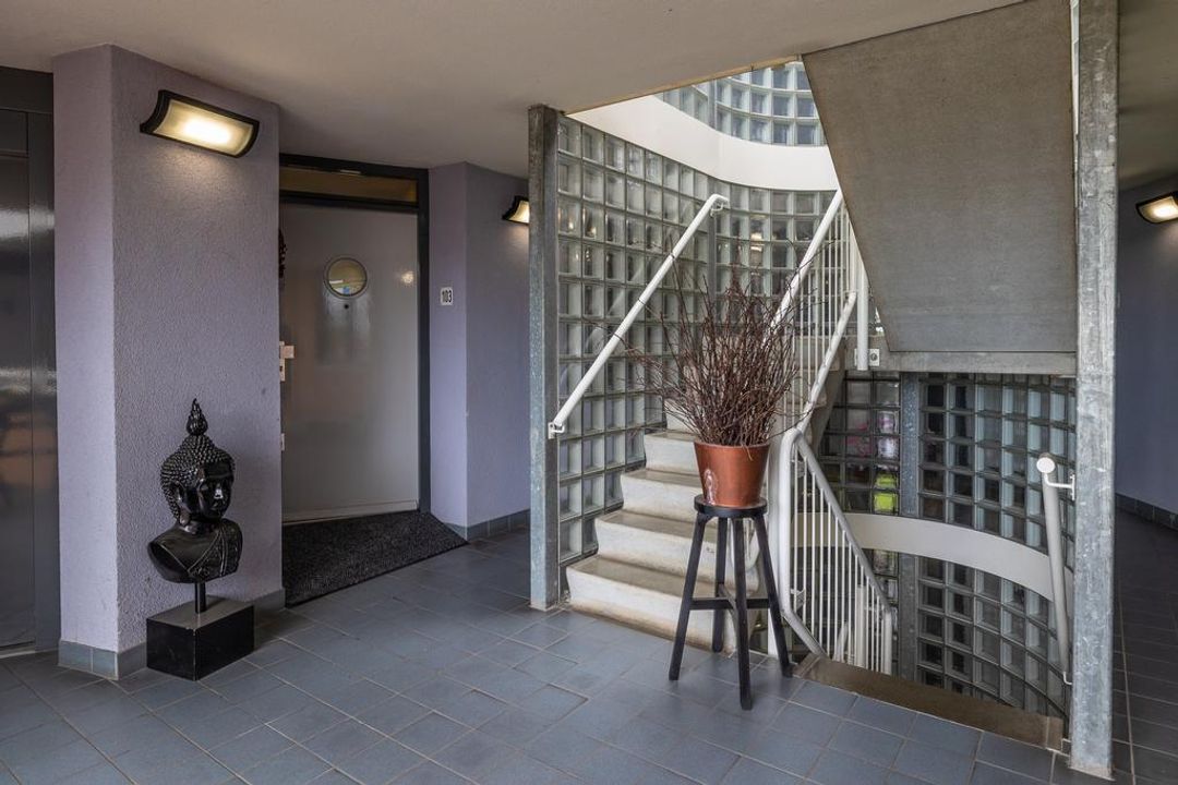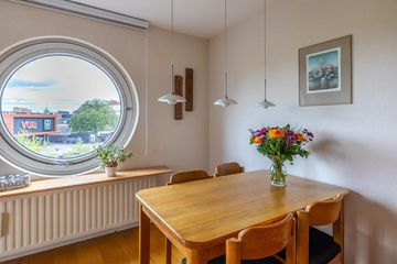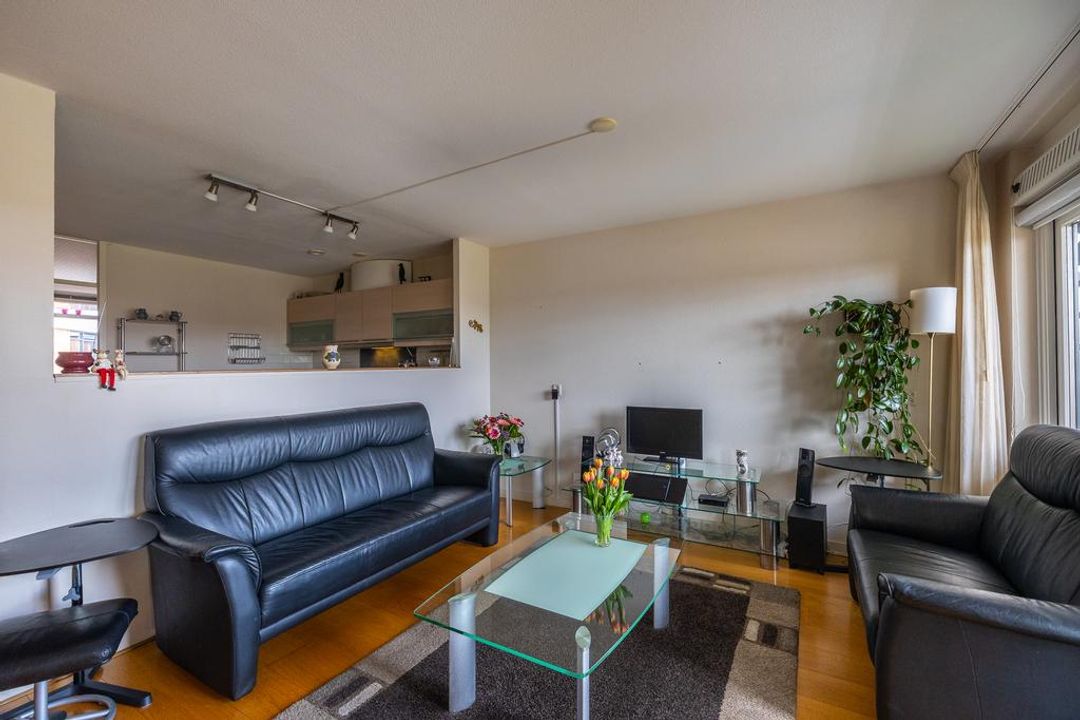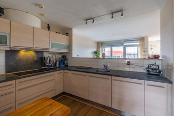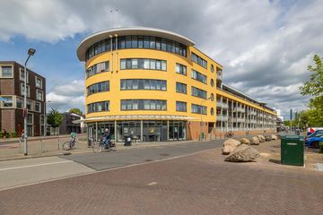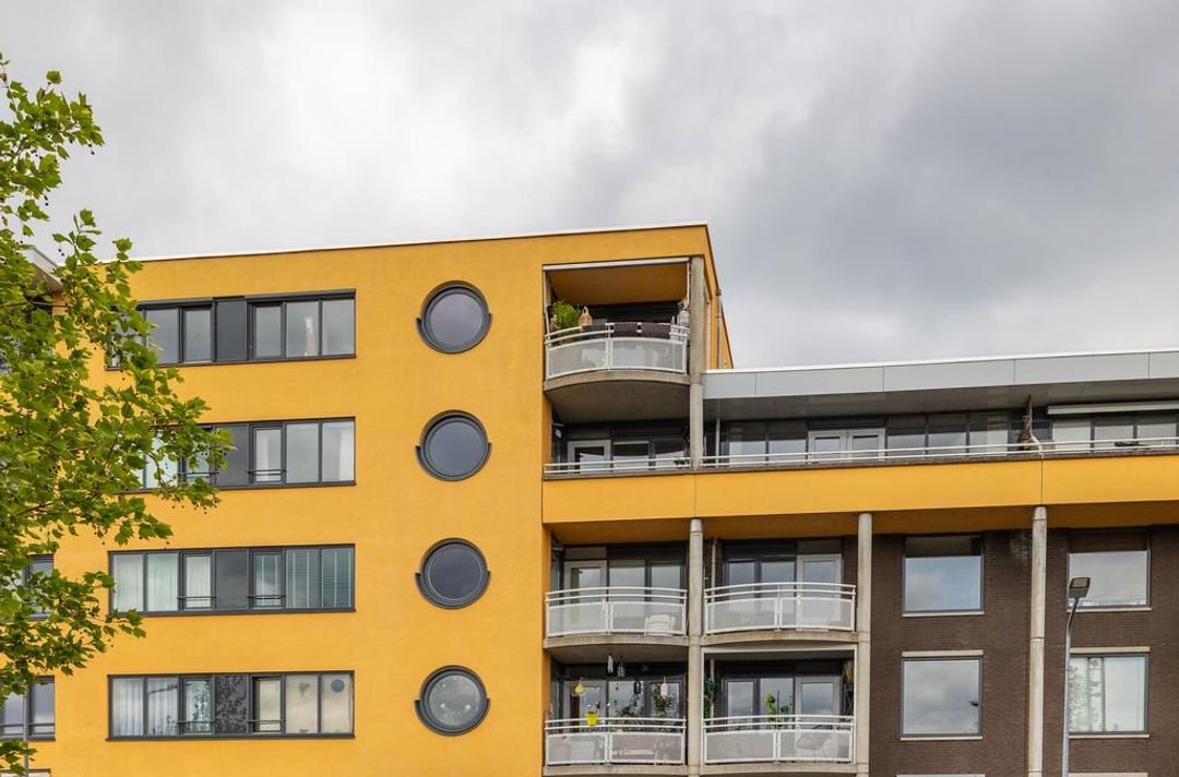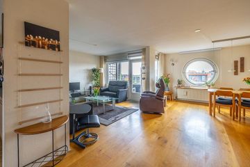 Indeling: entree, gang, toilet met fonteintje, meterkast, bergkast met C.V.-combiketel, 1e slaapkamer met aansluiting voor een wasmachine, badkamer met inloopdouche en wastafel, 2e royale slaapkamer, ruime lichte woon-/eetkamer met het voor het gebouw karakteristieke ronde raam en toegang tot een beschut balkon, open keuken voorzien van inbouwapparatuur en gezellige eetbar, 3e slaapkamer aan de galerijzijde.