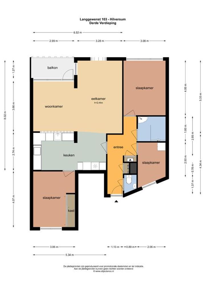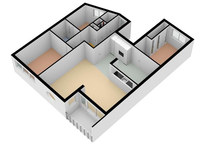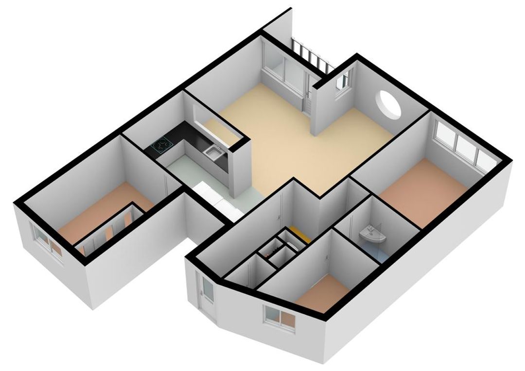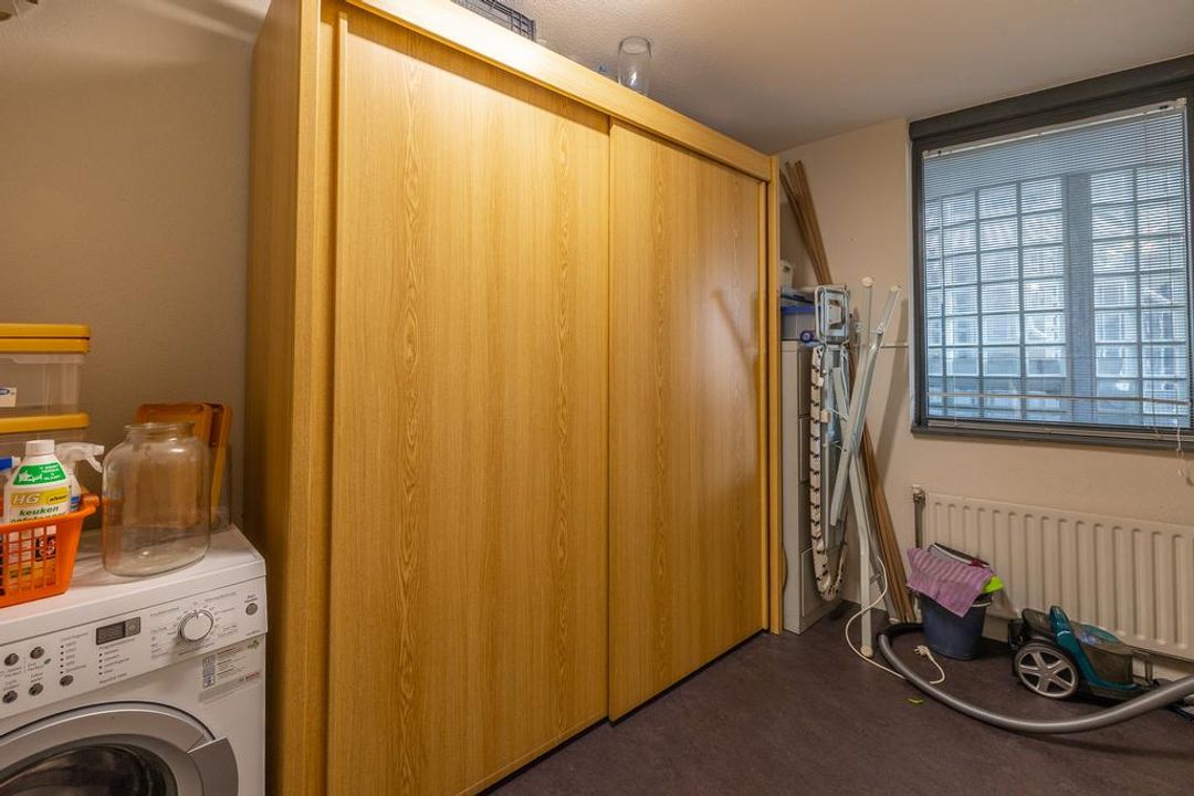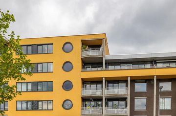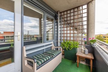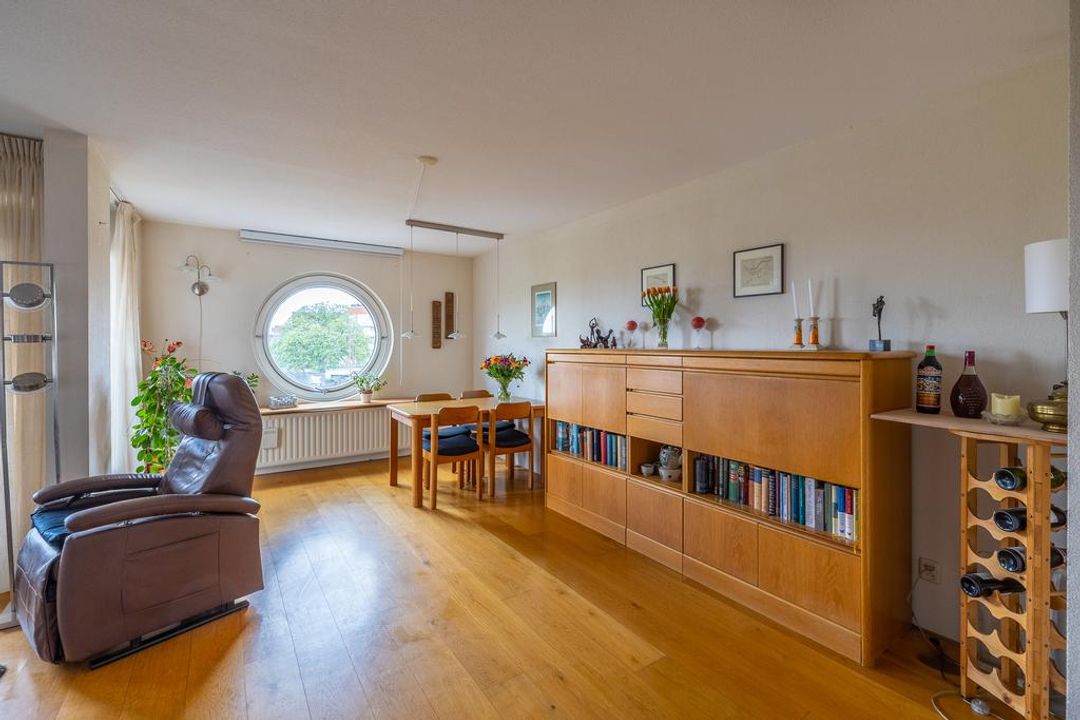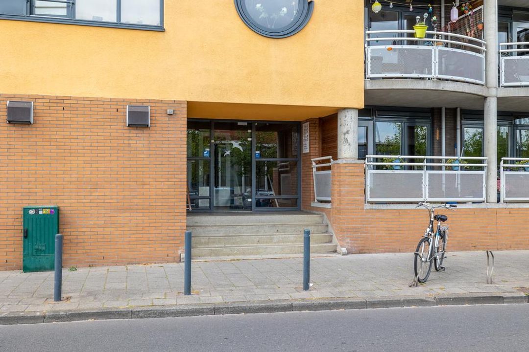 Indeling: entree, gang, toilet met fonteintje, meterkast, bergkast met C.V.-combiketel, 1e slaapkamer met aansluiting voor een wasmachine, badkamer met inloopdouche en wastafel, 2e royale slaapkamer, ruime lichte woon-/eetkamer met het voor het gebouw karakteristieke ronde raam en toegang tot een beschut balkon, open keuken voorzien van inbouwapparatuur en gezellige eetbar, 3e slaapkamer aan de galerijzijde.