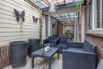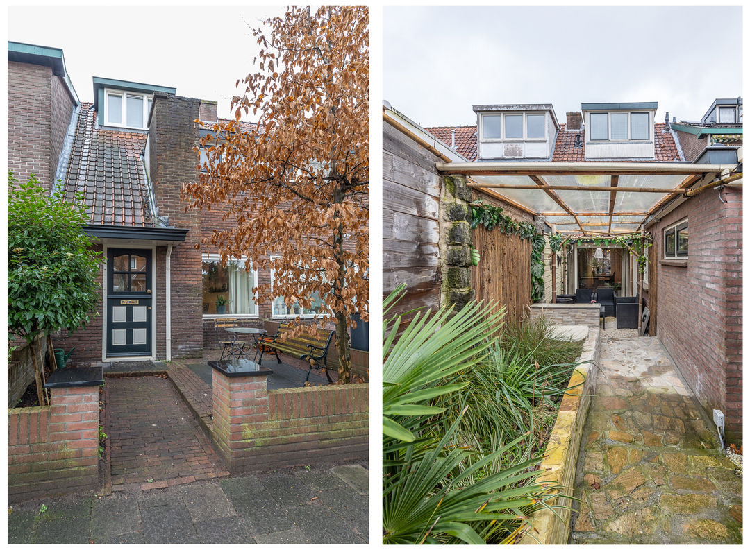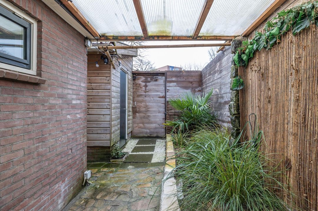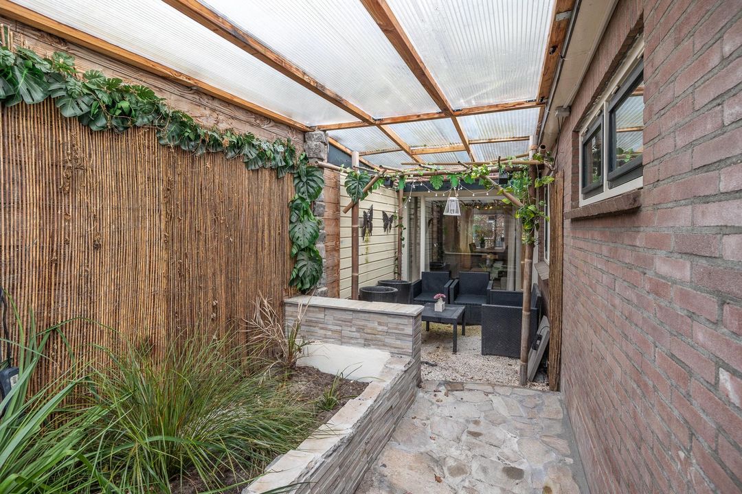 – Zonnige achtertuin (zuidwest) met schuur en achterom;