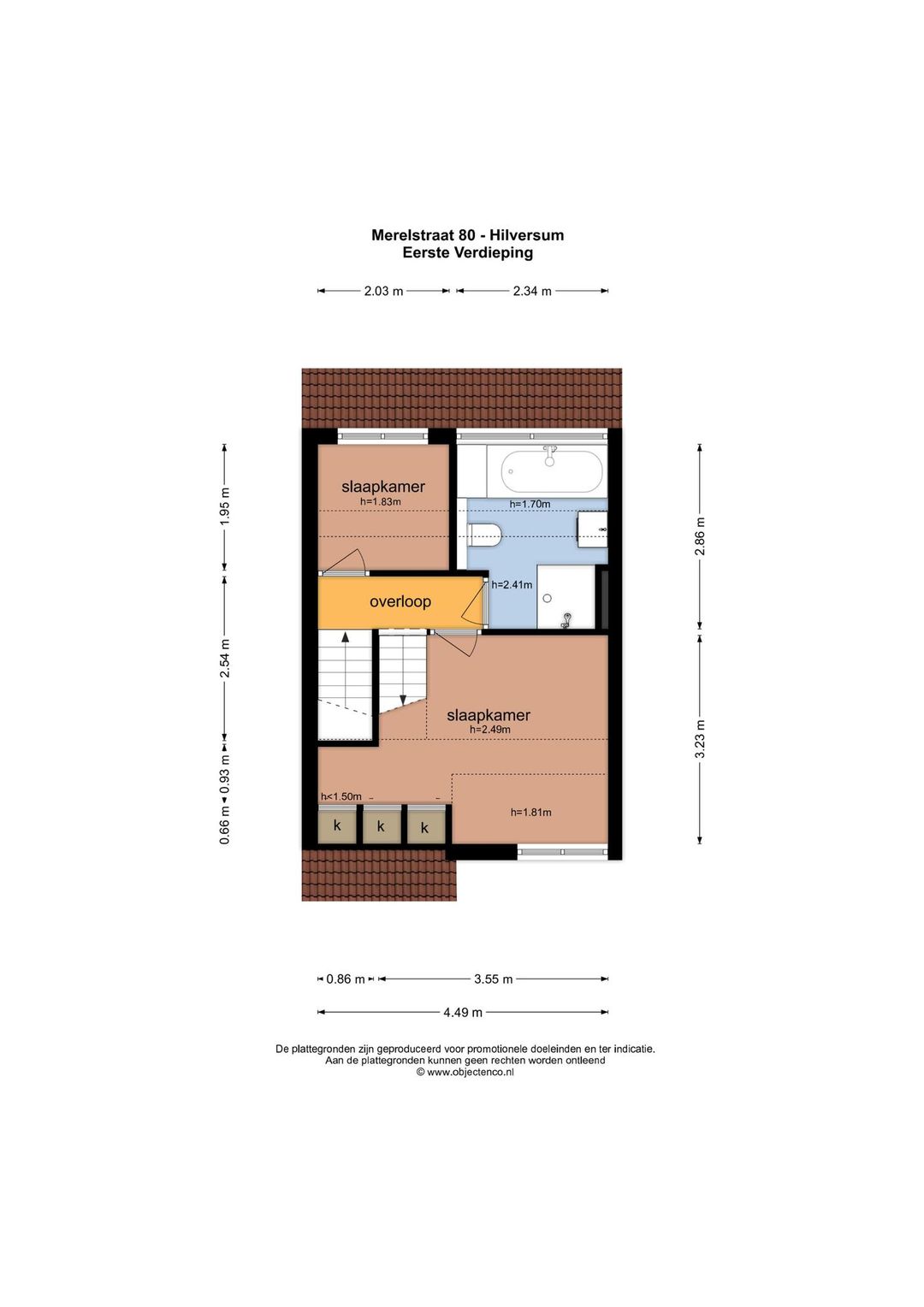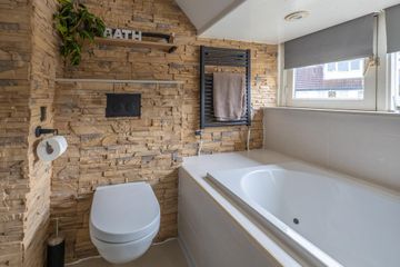 Eerste verdieping: overloop, 1e slaapkamer aan de achterzijde, 2e ruime slaapkamer aan de voorzijde, moderne badkamer voorzien van een ligbad, douche, wastafelmeubel en 2e toilet.