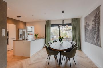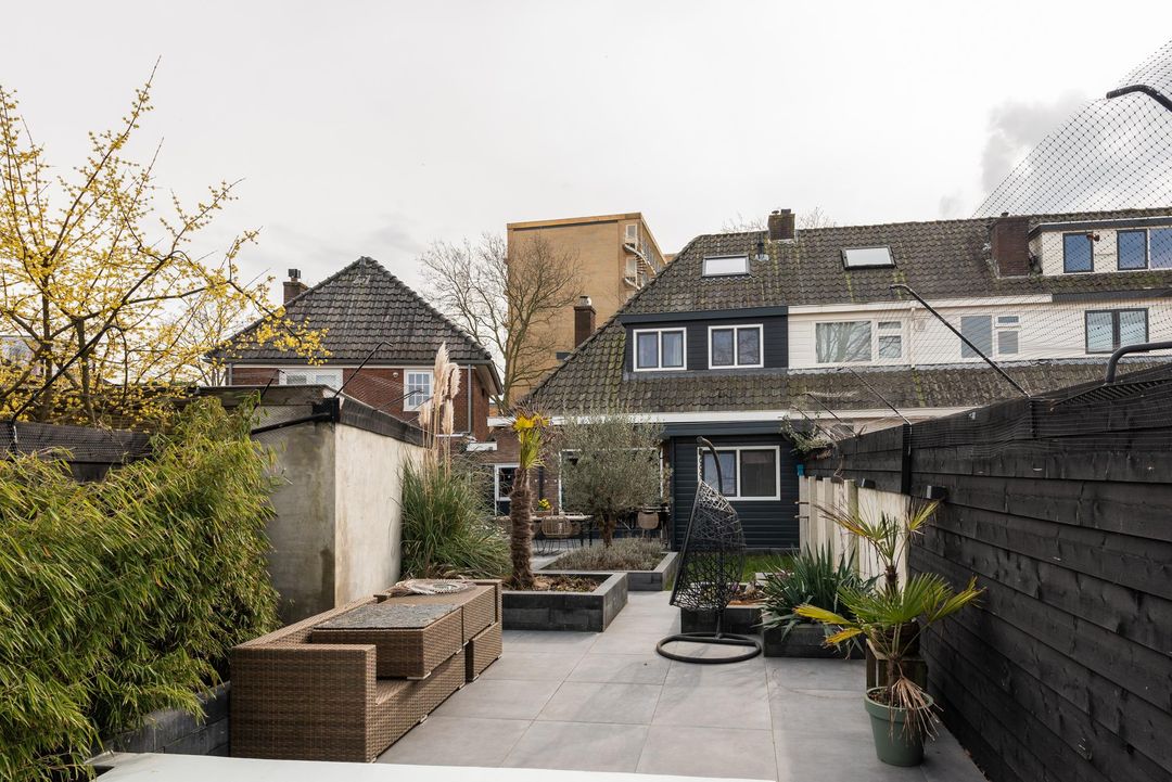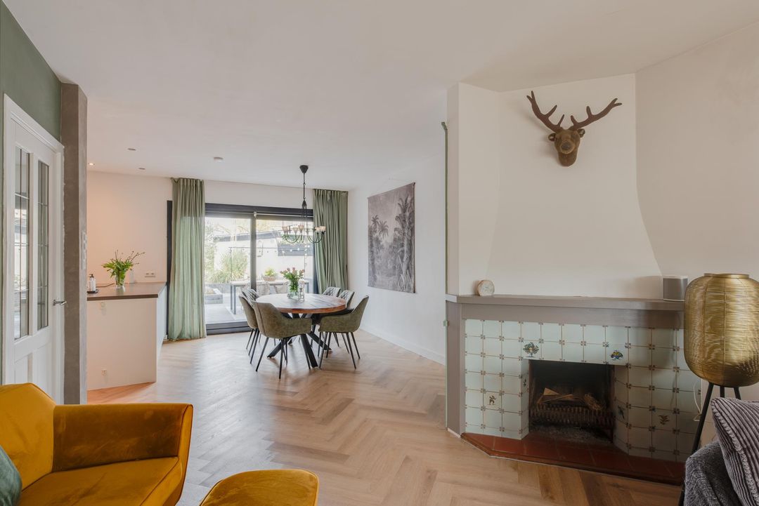 In het rustige stuk van de Oude Amersfoortseweg gelegen, perfect onderhouden hoekwoning met eigen oprit, garage v.v. elektrische deur en fraai aangelegde zonnige tuin met diverse terrassen en een plunge-pool.