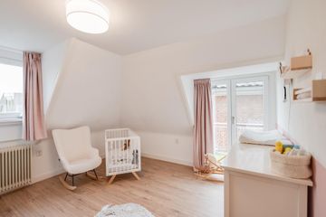 Via vaste trap naar geïsoleerde zolderverdieping met 4e slaapkamer, hier staan tevens de wasmachine, de droger en de c.v. combiketel (Nefit, bj. 2020).