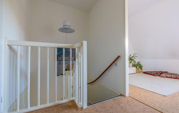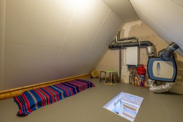 2e Verdieping: via vlizotrap in de voorslaapkamer bereikbare stahoge verdieping, thans in gebruik als bergzolder met c.v.-opstelling en Warmte-Terug-Win-installatie.