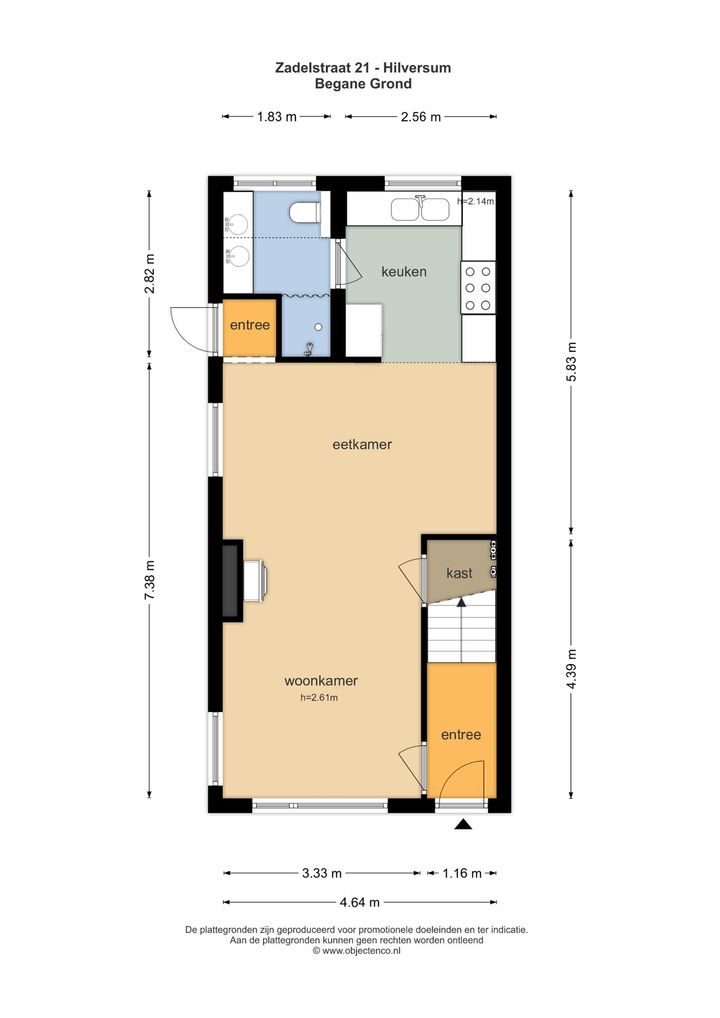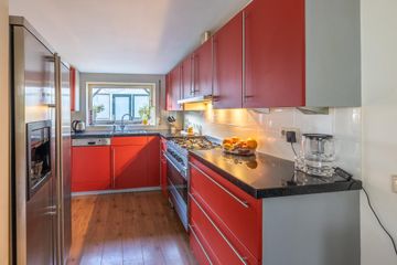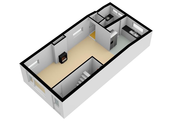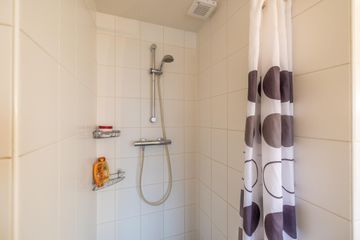Entree/hal, royale L-vormige woon-eetkamer met trapkast v.v. elektra meter, royale open keuken met diverse apparatuur, badkamer met inloopdouche, dubbele vaste wastafel en een toilet.